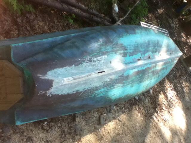 AKN Sand it down and apply some new fiberglass and matt to the bottom. Good as new. The nice thing about fiberglass boats. Very repairable. Came back to my canoe being borrowed by the village kids one year and left on the beach. Was busted out in 3 places. Bad. It is not as smooth as it once was but it floats. Don't let that hole scare you. I did repair it last year, guess maybe I should have used more material. I know I can repair it again, but I've already got a replacement cargo canoe and then a flatbottom. This poor thing is old, rotten, and beat. I can just about twist it into a corkscrew. I've gotten more than my money back out of this canoe; my first 2 moose, beaver trapping. It's time for it change it's mode of providing for the family. Who cares if that hole scares Aknative?