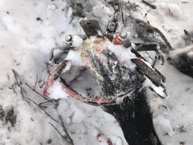 Judging by tracks, it looked like she was traveling with 2-3 other wolves and they didn't even slow down when she got caught. Kept right on trotting down the trail.