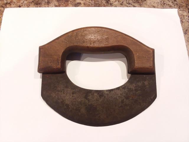 I am not 100% sure about the exact name of the ulu knife but from what I am finding of the inner web, it appears to be Henry Disston and Sons Mezzaluna style chopper.