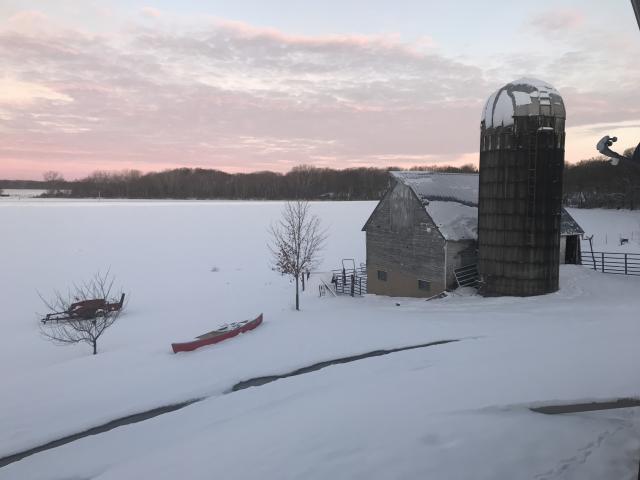 I love Illinois! I live on a good farm and live off the fat of the land. I can fish any day I want, I can hunt any day I want, and I can trap the same way. One thing I like about Illinois this time of year is the lack of mosquitoes. Here's the view out my back window not too long ago.