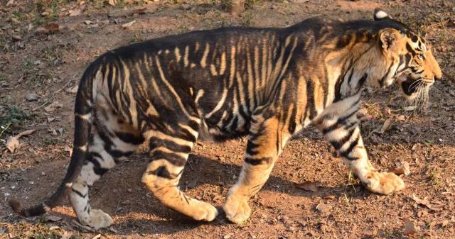 Biologists studying them have said that the characteristic has given selective advantage to the tigers. The dark forests there allow these tigers better camo than normal coloured ones , they can hunt better. Pseudo-melanistic tigers have much more black on them. Since they live isolated from other tigers, in breeding is said to produce this colour. However, there has been no signs of inbreeding depression , no loss of fitness or strength. There are plans to help stabilize the community by introduction of some normal tigers from outside the reserve.