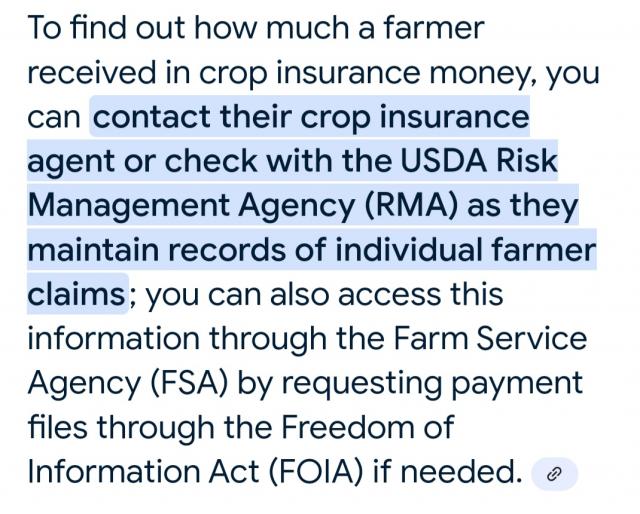 Only shows program payments , crp , disaster . Does not show crop insurance which is the big money maker