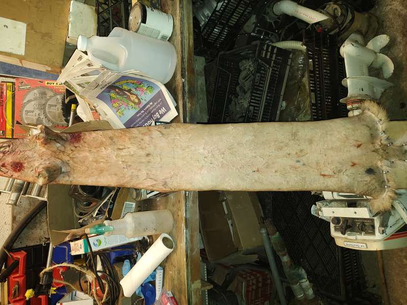 This is the first coyote I have put up, I fleshed and boarded last night. I am sending it in to get tanned. My question is did I take off enough flesh from the head to the front legs? The belly and lower back were getting thin when I was pushing so I was worried I was taking too much off. I didn't take off as much in the neck area. Hanging overnight in the cool(45 degree) barn with a fan on its still pretty moist to the touch. I did not use any Borax but have some. The lower belly areas are just starting to dry a bit. Should I pull it off the board and flesh more in the neck and shoulder areas? I really want this to tan nicely for my son. Thank you for any advice.