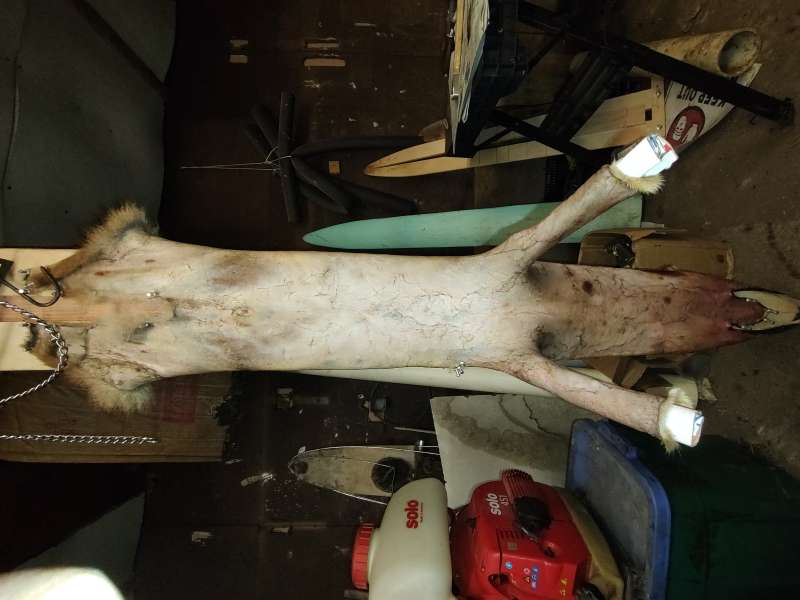 You can shorten the front legs to save room hanging it when you get more and prevent damage to other hides it looks like you did a good job if that’s your first. Not to short on the legs don’t just leave a hole there.